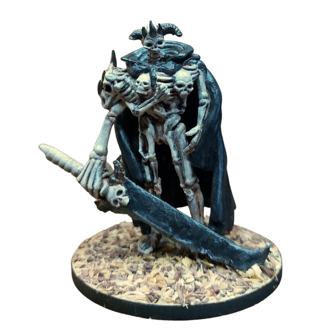 Pela sua descrição eu não poderia colocar ele como uma criatura comum, por isso o tornei um monstro lendário, concedendo a resistência desse tipo de monstro e também uma característica que facilitasse ele passar por testes contra expulsar mortos-vivos. No final, fiquei bastante satisfeito com o resultado e achei que consegui expor em sua ficha os aspectos certeiros em relação a sua miniatura.