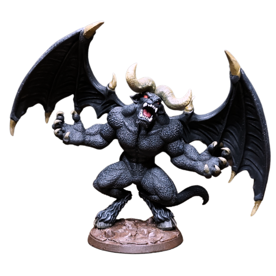 Nosferatu Zodd é um guerreiro imortal e carniceiro, com uma aparência bestial e única, e eu queria que a ficha que eu fizesse para a miniatura fosse carregada dessa energia. Ao mesmo tempo, eu não queria simplesmente fazer um cópia e cola de sua essência, queria criar algo inspirado e que lembrasse ele. Com isso, eu cheguei a conclusão que o monstro que eu ia fazer seria um demônio e comecei a buscar inspirações dentro de D&D e fora.