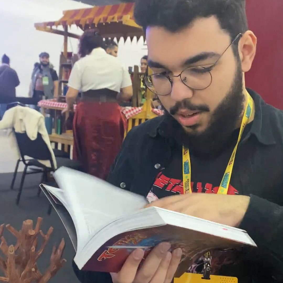 Anos foram passando e eu fui cada vez mais me aprofundando no hobby de ser um mestre de RPG, e já faz alguns anos que meus amigos Jaime e Karina da ImpGeek vão no evento, e eu sempre desejei os acompanhar nessa jornada. Ano passado eu me formei na faculdade e decidi que em 2024 seria o ano que iria para a DOFF pela primeira vez. Desde janeiro vinha convivendo com esse pensamento, de estar nesse monte de gente que gosta das mesmas coisas que eu e mergulhar fundo nesse habitat perfeito para minha pessoa. Eu só não esperava que ia acontecer da forma que aconteceu.